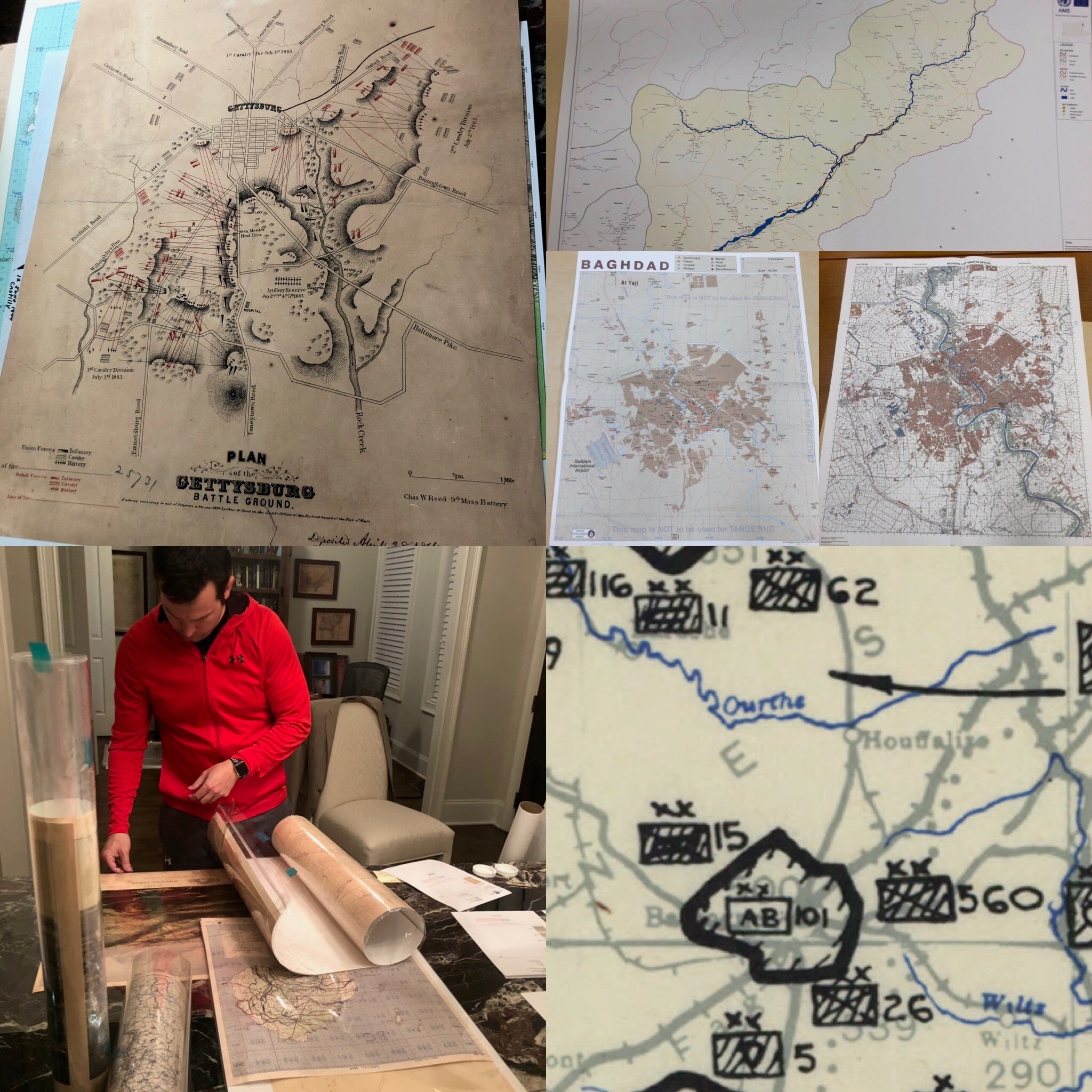 I'm a Marine Officer who served in Iraq and Afghanistan. These aren't decorations — they're the actual maps commanders used to plan operations. I find them, preserve them, and bring them home.
