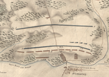 This map was created by the British and has excellent water coloring of the different units and their locations. Units on the field are lettered with the legend in the bottom left corner.