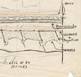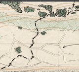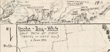 Phenomenal drawing of the landing site on Omaha Beach, Dog White sector. Route shown is the exit route the troops took around 0855 hours on 6 June. Annotated are where landing craft were wrecked, bangalore torpedoes used, and German machine gun nests.