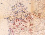 This German operations map of Army Groups Center and North show the situation on the Eastern front on 1 January 1945. To the north you can see the trapped Army Group North (Nord), also known as the Courland Pocket. To the south there is Army Group Center (Mitte), defending from the Baltic Sea in front of Konigsburg to east of Warsaw.