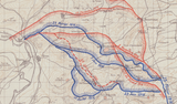 This French map shows the front lines of the battle in 1916 on 21, 23, and 25 February, 24 May, 7 and 23 June, 11 July, 24 October, 2 November, 15 December, and after the battle on 20 August 1917.
