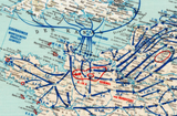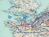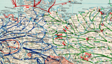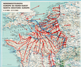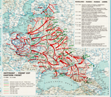 This large color map shows the entire war from the German invasion of Poland in 1939 to the fall of Berlin in 1945 - all in incredible detail. Insets include the Eastern Front, Finland, France 1940, North Africa, and the Balkans. Map in German, French, and English.