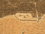 This magnificent bird's eye perspective reveals the complete transformation of Chicago following the devastating 1871 fire. Where the 1868 view showed densely-packed wooden buildings, this 1892 panorama displays a modern city rebuilt with fireproof materials—towering commercial blocks, grand hotels, impressive civic buildings, and the emerging skyline of early skyscrapers that would define Chicago's architectural legacy. The rebuilt downtown core spreads inland from Lake Michigan's shoreline with wider streets, improved infrastructure, and the confident architecture of a city determined to prove its resilience. The harbor bustles with even greater activity than before, reflecting Chicago's growth as America's second-largest city and transportation hub. The precious 1832 inset in the corner provides stunning perspective—showing the modest frontier outpost of log cabins and dirt paths that would become one of the world's great cities within a single lifetime.