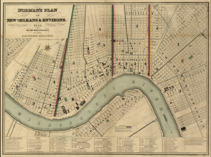 New Orleans, Louisiana – 1845 Norman’s Plan of New Orleans & Environs