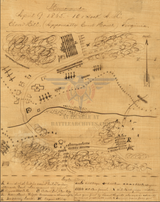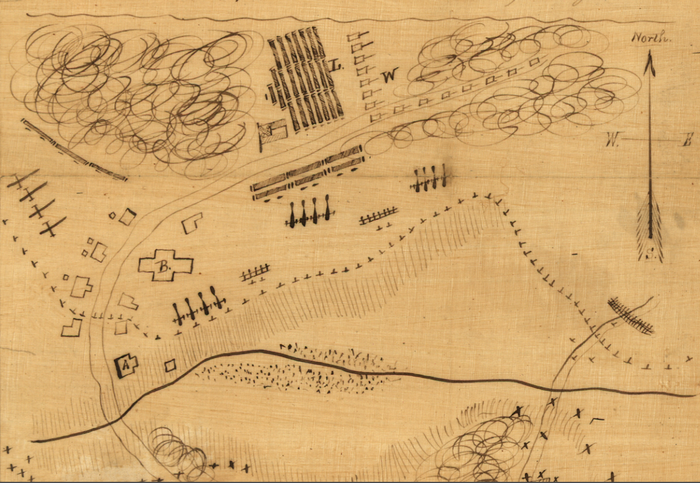 The Battle of Appomattox courthouse on 9 April 1865 was the last major battle of the Civil War. Robert E. Lee and the Army of Northern Virginia surrendered later in the day on 9 April. This hand drawn map shows troop positions at 10am on Clover Hill. The legend at the bottom has an annotation for the actual house the surrender took place at. The map is titled "Memoranda, April 9 1865-10 O'clock A.M., Clover Hill (Appomattox Court House) Virginia"
