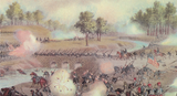 The First Battle of Bull Run, or by the Confederates as the First Battle of Manassas, was fought on 21 July 1861. It is considered the first major battle of the Civil War. The Confederate forces of the Army of the Potomac (later renamed the Army of Northern Virginia) under General Beauregard beat the Union Forces of the Army of Northeastern Virginia led by General McDowell. Confederate Brigadier General Thomas Jackson received his nickname "Stonewall" on the field here. The battle took place roughly 25 west of Washington D.C.