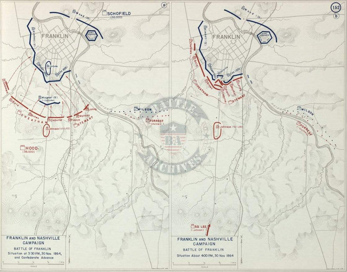 Franklin, Tennessee Confederate Attack Side by Side Battle Map