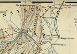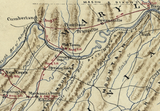 This map shows the movements of the two armies from 29 July to 8 August. In the northeastern corner is Chambersburg, PA, where the Confederates burned the town after the townspeople could not raise the demanded $100,000 in gold $500,000 in Union currency to save it. In the bottom left is The Battle of Moorefield on 7 August, the final battle during the period covered by this map.