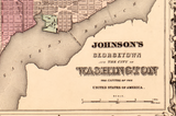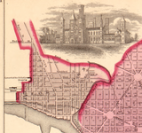 Explore Washington, D.C. and Georgetown as they were presented to the public during the Civil War with this richly detailed ward map published in 1862 as part of Johnson’s New Illustrated Family Atlas. While grounded in contemporary geography, this map also reflects an idealized vision of the capital—combining lived urban reality with aspirational illustrations of national landmarks intended to portray Washington as a complete and enduring seat of government.