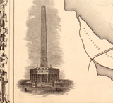 This map presents Washington City and Georgetown with color-tinted ward divisions, a clear street grid, major avenues, public squares, and the Potomac River shoreline. Georgetown is distinctly labeled and fully integrated into the capital’s layout, making the map especially compelling for those with ties to that historic neighborhood. Decorative vignette illustrations depict the Washington Monument, the U.S. Capitol, and the Smithsonian Institution—not as they physically appeared in 1862, but as they were intended to look once completed. The Washington Monument is shown according to Robert Mills’s original 1845 design, complete with its planned colonnaded base, while the Capitol appears crowned by its fully realized cast-iron dome, still under construction at the time.