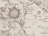 Battle map of Austerlitz, which is considered one of the most perfect military victories in all of military history. Austerlitz was fought on 2 December 1805 in modern day southeast Czech Republic. The outnumbered Napoleon defeated Russian Tsar Alexander I and Holy Roman Emperor Francis II. The result led to the collapse of the Holy Roman Empire for good. Map is in German.