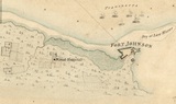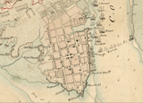 Highly detailed map showing the defensive fortifications used by the Americans for Charles Town and the three parallels used by the British as they advanced towards the city.