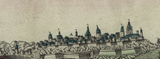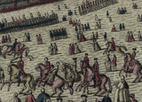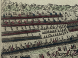 French drawing from the south of Yorktown looking north along the York River with the American and French to the north and west.