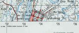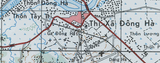 Topographical map showing the area north of Quang Tri, with towns such as Dong Ha, Ha Thuong, and Thon Cam Lo.  The DMZ is also shown.