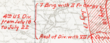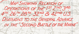This map shows the movements and locations of the 8 American divisions involved as they advanced after stopping the German thrust.