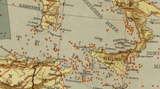 German map showing the location of Allied naval sinkings by the German U-Boat (U-Boote) Fleet from 1 February 1917 to 1 February 1918.