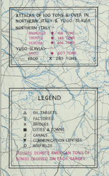 Air targeting map produced by Supreme Headquarters Allied Expeditionary Force showing targets hit with over 100 tons by the Eighth Air Force and 8 Bomber Command in January 1945.