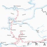 Campaign across Europe of the 80th Infantry Division, nicknamed "Blue Ridge Division" because most of the soldiers filling the ranks when the division was activated in 1917 came from Virginia, West Virginia, Maryland, and Pennsylvania. The 80th crossed the English Channel in August 1944 and was apart of Patton's Third Army. The Division fought in the Battle of the Bulge and helped relieve the 101st Airborne at Bastogne. They continued on through Germany and ended the war in Austria. This map was passed as safe to "mail home" by the AEF Field Press censor.