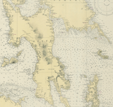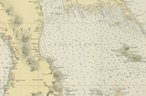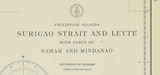Map published by the US Coast Guard in 1936 and updated and reissued in 1941 of the central Philippines, with focus on the water depth around the islands of Leyte, Samar, Bohol, Cebu, Camotes, Mindanao, and Dinagat. The Battle of Leyte Gulf was the largest naval battle in history in terms of tonnage of ships involved, tonnage of ships sunk, and physical size of the engagement area.