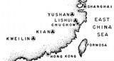 This map shows the target areas of Tokyo, Yokosuka, Kobe, Nagoya, and Yokohama as well as the intended airfields for the crews to land in China (of which no crews reached). 15 planes crashed, and 1 landed at Vladivostok, Soviet Union.