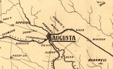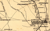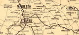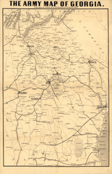 Map titled "The Army Map of Georgia" showing roads, railways, and forts in the state.