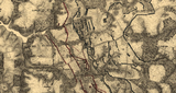 1867 post battle survey map showing the trench lines from the Battle of Cold Harbor which occurred 31 May-12 June 1864 in Hanover County, Virginia.