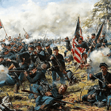 The Battle of Gettysburg, the most consequential battle of the Civil War, was fought from 1-3 July 1863 outside the town of Gettysburg, in southern Pennsylvania. The Army of Northern Virginia led by Robert E. Lee, Longstreet, and Stuart with roughly 75,000 men were making their second attempt in invading the North (Maryland Campaign of 1862). The Army of the Potomac was 100,000 strong and was led by Meade, who was recently installed as commander after President Lincoln fired Hooker three days prior to the battle commencing. The outcome of the battle was still in doubt on 3 July, considered the “High Water Mark of the Confederacy” as the closest the South ever got to winning the war. The Battle of Gettysburg, with an estimated 45,000-51,000 casualties, is the bloodiest battle in American history.