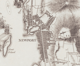French military map from 1782 showing the locations of the French Army and Navy in and around Newport, Rhode Island. The inscription reads (in French) "Plan and position for the French Army around Newport in Rhode Island, and of the squadron's anchorage in the harbor of the city."
