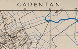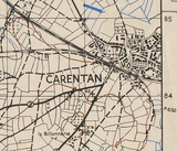 Topographical map of Carentan, France. The Battle of Carentan took place 6-13 June 1944. The 506th of the 101st (Easy Company from Band of Brothers) approached from the northwest and continued southwest after the capture of the town.