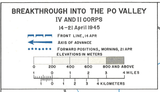 Battle map showing the breakthrough in the Po Valley towards Bologna, Italy from 14-21 April 1945. Po Valley were some of the final combat units of World War 2 for the Americans, as the surrender was only weeks away. This was apart of Operation Grapeshot, which included the 5th Army (now United States Army North)and the British 15th Army. Unit movements shown include the 10th Mountain Division and 1st Armored Division).
