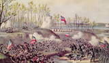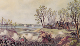 Artist depiction of the battle on most likely 7 April as the Union advanced and won the day and battle on the 7th.